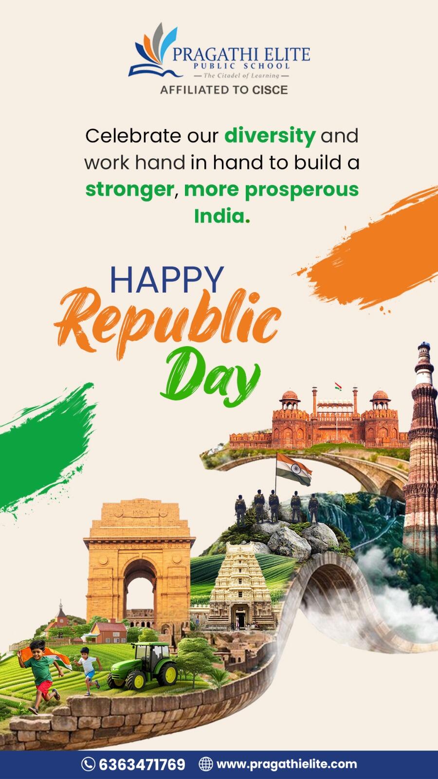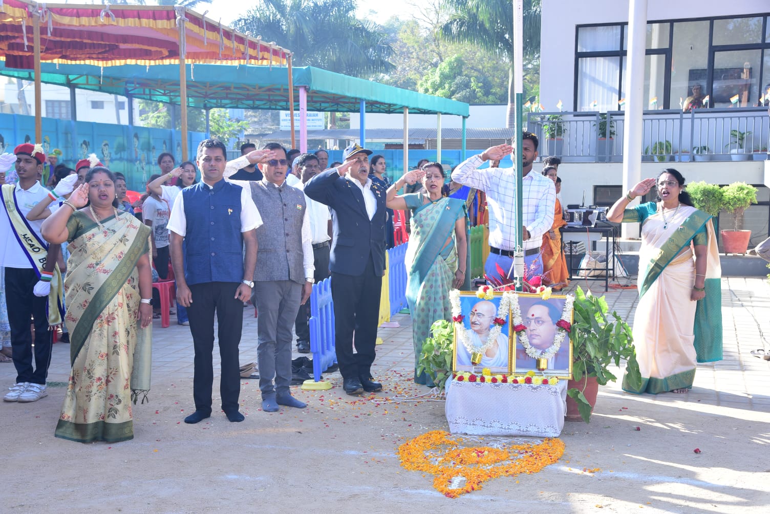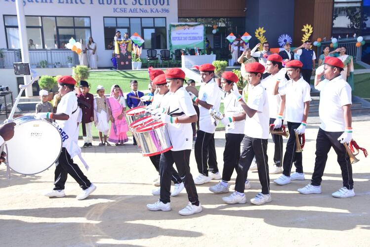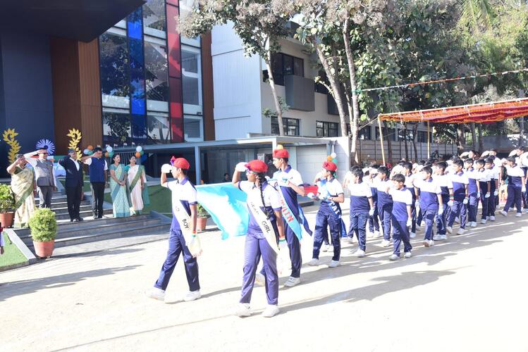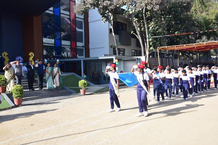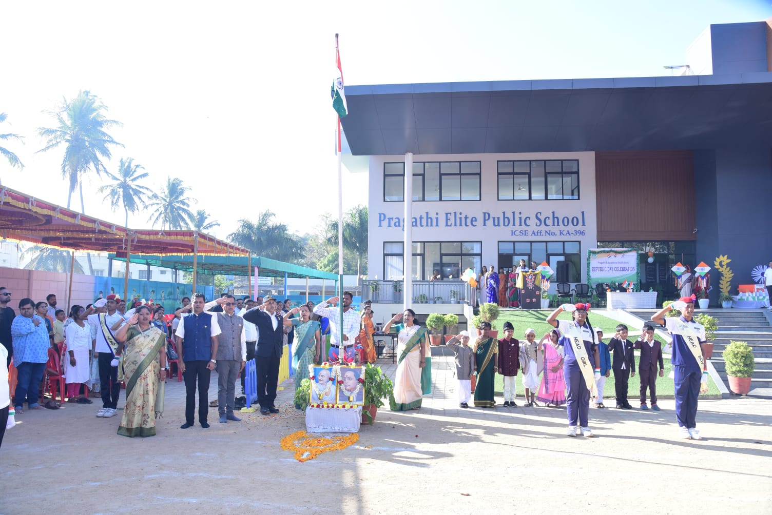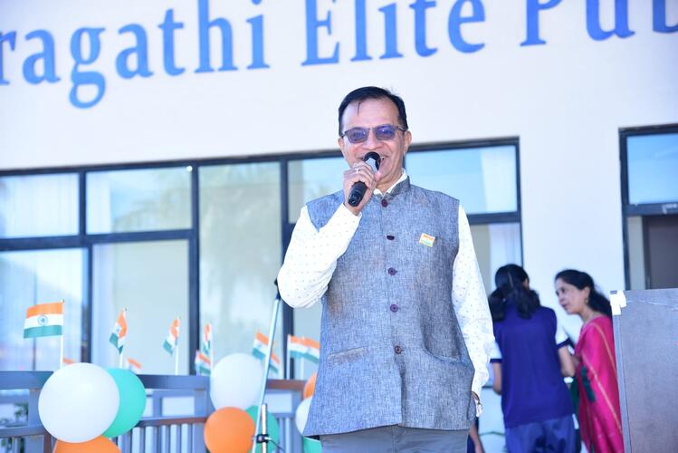 Pragathi Institutions celebrated 76th Republic day with great patriotic fervour, Chief guest of the event was Retired Group Captain C K Karthik, Indian Air Force.