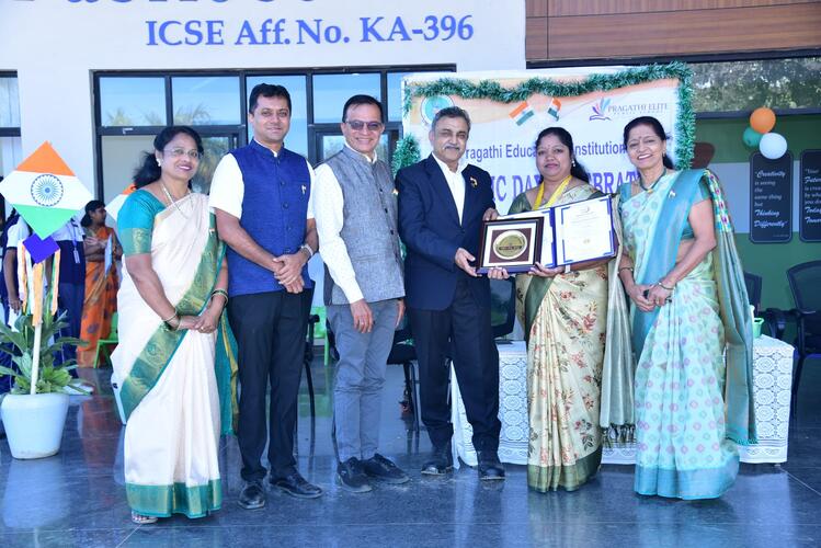Our beloved Chairman Shri V Venkatesh, Smt Jayashri Venkatesh – Academic Director, Shri Karthik V Kashyap – Administrator, Smt Mamatha K K – Headmistress of Pragathi Vidya Kendra, Smt Chaithra V V – Principal of Pragathi Elite Public School were part of the programme.
