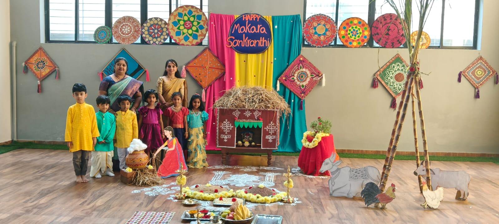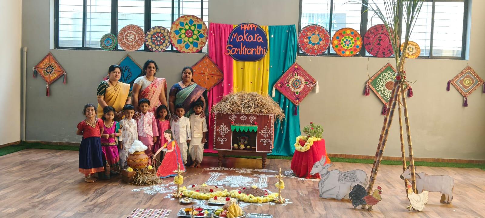Kindergarten kids dressed in traditional attire, celebrated sankranthi with great fervour.